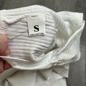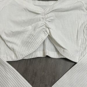 Off Shoulder Ribbed/Ruched Crop Long Sleeve Shirt White Size Small