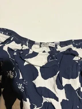Brand: JECEIKA 100% Polyster.Lightweight, flowy and comfy. Size: M but runs small