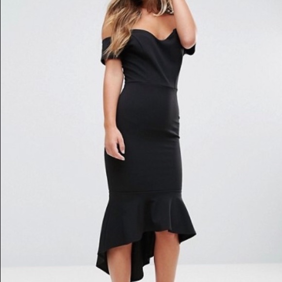 Beautiful fitted black dress worn once purchased at ASOS. Based on UK sizing so it fits more like a US 4 petite