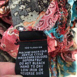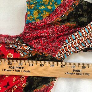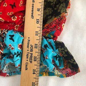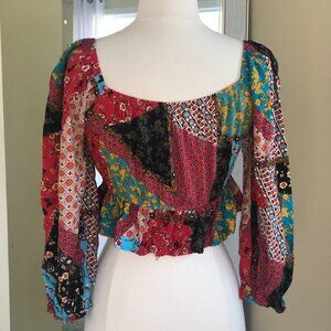 Patchwork Ruffle Balloon Sleeve. Rayon