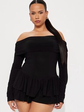brand NWOT off the shoulder ruffle romper!! super cute, can be dressed up or down. never worn, just tried on. size 2x but could probably fit a size up or down depending on how you like your clothes to fit :)