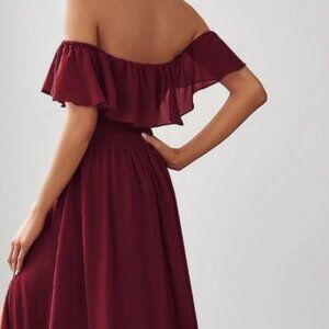 Off Shoulder Rust Red Dress Wedding Prom Chiffon Poly Lined M 8 10 Christmas Valentine
