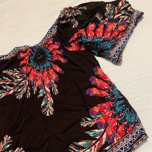 Super cute and flowy off shoulder top! Perfect for a girls night, vibrant deep floral fun pattern