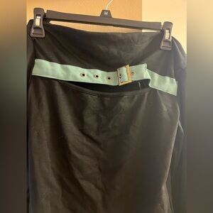 Off shoulder top, size M, long sleeves, cut out, buckle detail and it does have a stretch.
