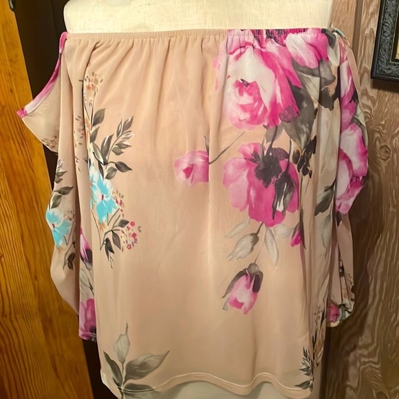 Beautiful Off Shoulder Top Floral Design Sheer 34 Length Sleeves Body is Lined Small