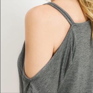 Off shoulder tee tunic with straps 95% rayon, 5% spandex Runs a little big