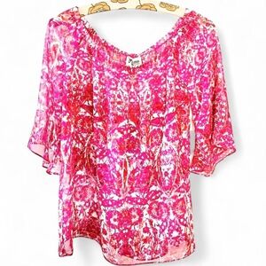 NWT XS Show Me Your MuMu off shoulder paisley floral bell sleeve sheer blouse