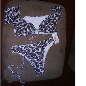 Never Worn. Medium in US size/Large in Chinese sizes. Full High Waist Bottom. Of the shoulder store tool. Slight padding, no wire. No Refund! No Return!