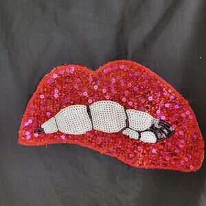 Off The Shoulder Blouse size M Black Sequins Bite Lips Never with Teeth