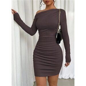 Off The Shoulder Dress for Women Coffee