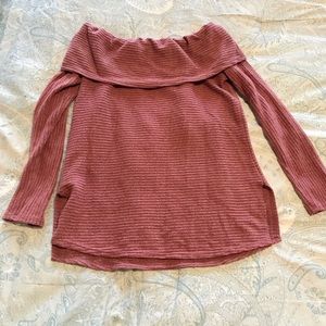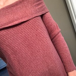 Size Small, off-the-shoulder dusty pink sweater. Ribbed material, super comfy. Never worn!