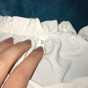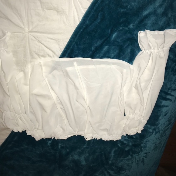 Super cute cropped off the shoulder top. Sorry the first pic is upside down. Thin material so it’s perfect for a hot day. Never worn.