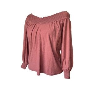 With an off the shoulder style and smocking at the wrist and neckline this Nation LTD top can be dressed up or down. The fabric is 100% pima cotton and very lightweight - perfect for sunny days. EUC