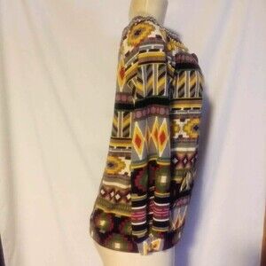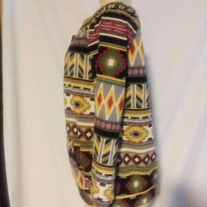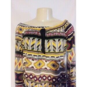So trendy and stylish and soft to the touch, Brand new, multi-Aztec off-the-shoulder, front kangaroo pocket knit top, with long sleeves sweater style comes in Small, Medium, and Large. Material polyester