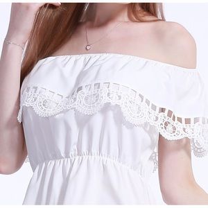 A brand new white dress, cute for beachwear or summer. You can wear it off the shoulders or both shoulders on. You can also pair it with different belts to change your look. Super versatile. Fits size XS or S. Measurements (approx): Bust 35-36inches, Waist 28.5inches, Length 30inches.