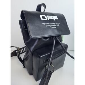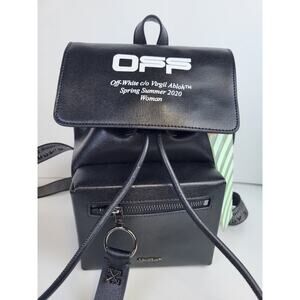 This Off-White backpack is the perfect addition to any casual outfit. With a rectangle shape and mini size, it's easy to carry and versatile for any occasion. The black and white leather exterior is stylish and sleek, while the drawstring closure adds a touch of sophistication.