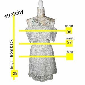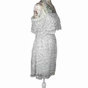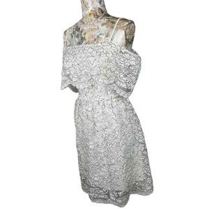 Off White & Black Lace Off Shoulder Spaghetti Strap Scalloped Hem Edges Dress