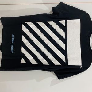 Size XS off white black Caravaggio t-shirt. Original tag included. Wrinkling from washing and small hole on the back side (included in photos)