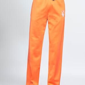 Long trousers in orange with white logo printed at front. Elasticized waistband.
