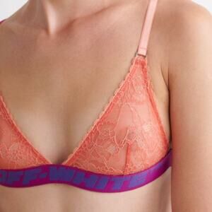 lace, brand logo, two-tone, hook-and-eye closure, stretch, triangle cup bra