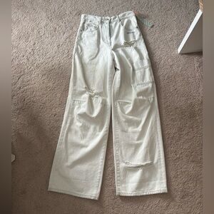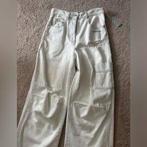 Never worn with tags. Awesome off white distressed oversized tomboy jeans. Large pockets and slight rips. Super cool, great quality