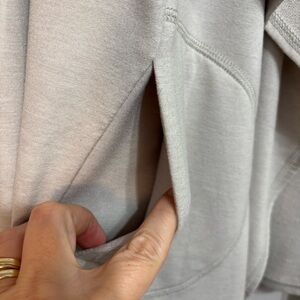 Chic light gray cardigan by Eileen Fisher with an open front design. Perfect for layering and adding a touch of elegance to any outfit.