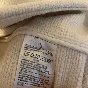 Beautiful off-white textured unlined button front coat with side pockets. Hits mid-thigh.