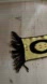Stylish yellow and black knit scarf with bold graphic design. Features red accents and fringe detailing.