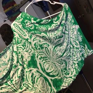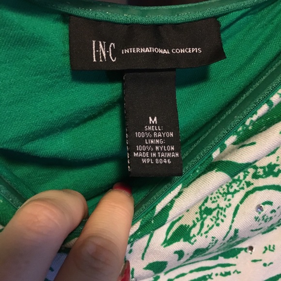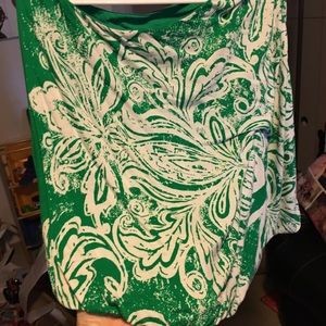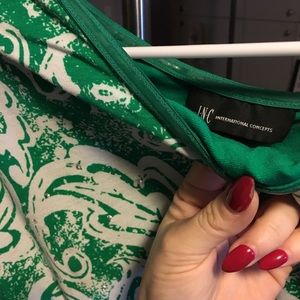 INC off shoulder top loose fit. Green and white with neckline lined with a soft rubber so that off shoulder stays put! <3