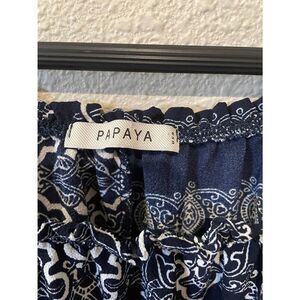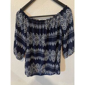 Papaya Blue & white Off shoulder 3/4 sleeve Size large Beautiful blouse in perfect condition!!