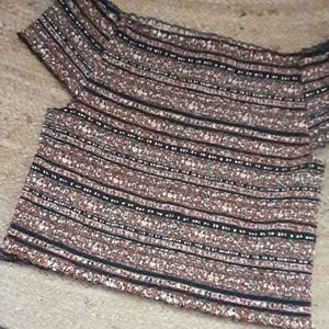 So cute and new has little ruffle on bottom top and sleeves wear up or down pair with jean Jacket Jean's boots perfect fall look lots stretch measures 17by16