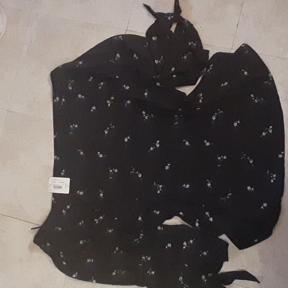 beautiful off shoulder, peek-a-boo sleeves tie at hem. flowy top, short slits on either side. sheer. New