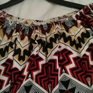 Cute tribal pattern dress, can be worn on or off shoulder. Never been worn. It's about knee length and I'm 5'4. it also has darling Bell sleeves.