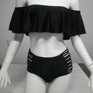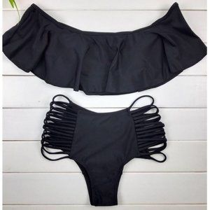 Off shoulder two pieces bikini set black brand new