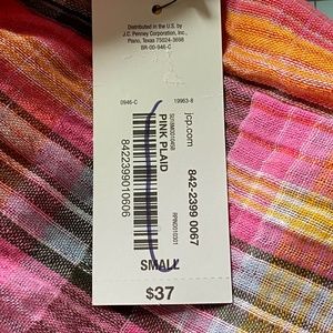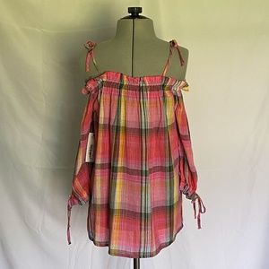 Off the Shoulder A.N.A. Women's Size SMALL Plaid Gauzy Top 3/4 Sleeves NWT