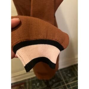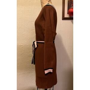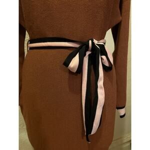 Off the Shoulder Boat Neck Contrast Long Sleeve Knit Belted Sweater Dress Size M