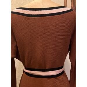 Off the Shoulder Boat Neck Contrast Long Sleeve Knit Belted Sweater Dress Size M