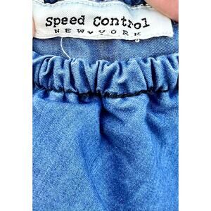 Off the Shoulder Chambray Peasant Ruffle Dress by Speed Control NY