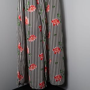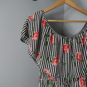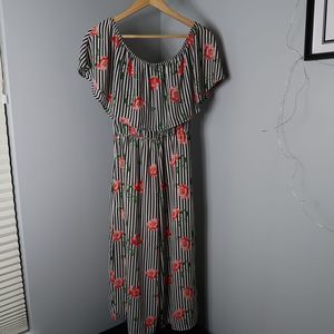 Off the Shoulder Floral Striped Wide Leg Jumpsuit