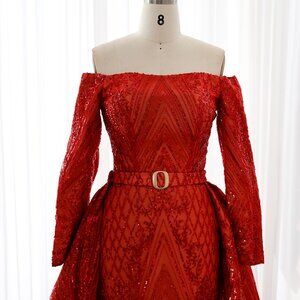 Off the Shoulder Long Sleeves Sequin Prom Dress Formal Evening Gown