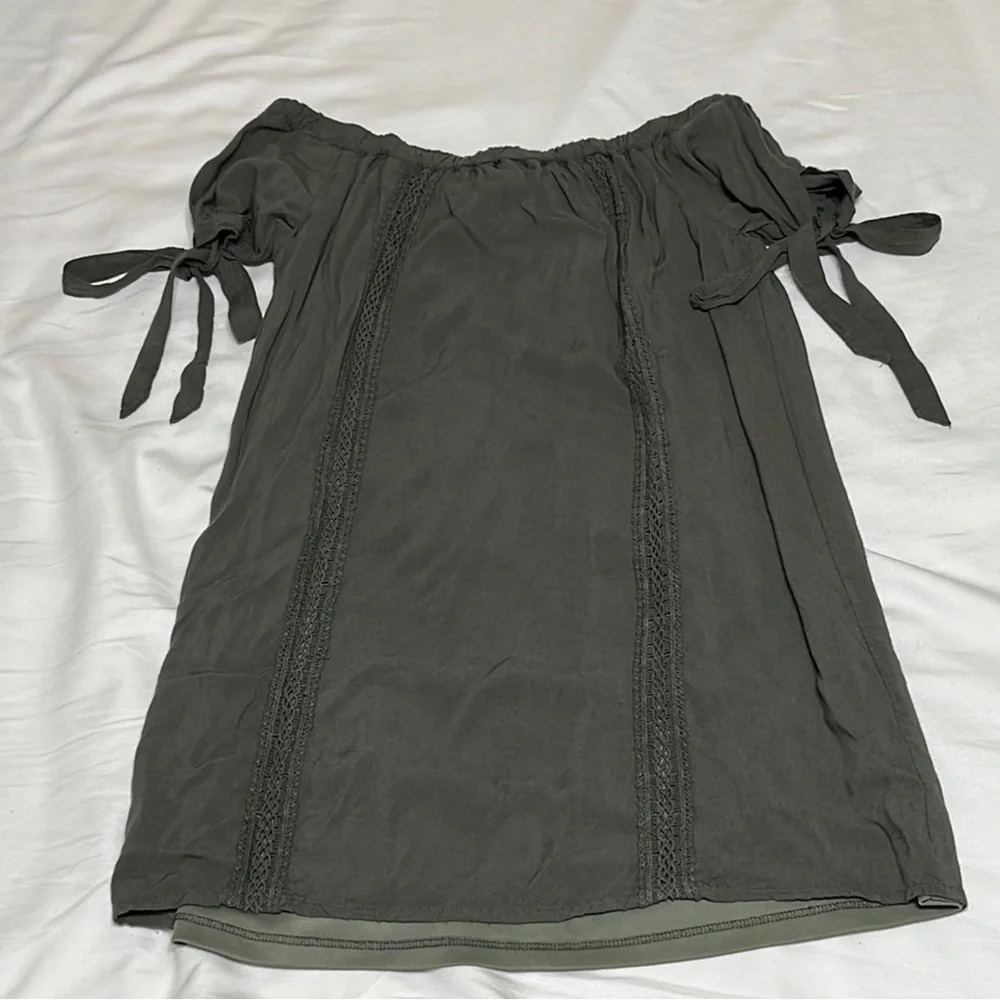 Charlotte Russe Off the Shoulder Mini Dress with Smocked band, and tied cap sleeves