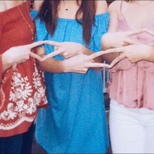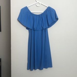 As U Wish off the shoulder blue ruffle dress. Like new. Very soft and flattering