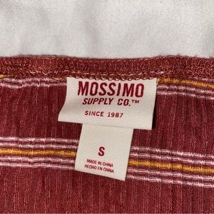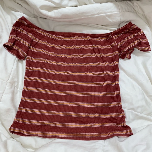 Marroon, white and yellow off the shoulder stripped crop.