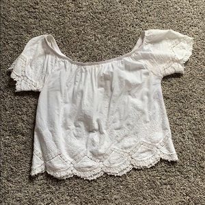 Full Tilt White with Lace Detailing Off the Shoulder Top