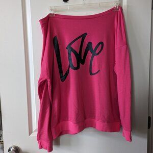 You'll LOVE this cute and comfy off the shoulder Love lightweight sweater. Beautiful and vibrant pink color to really showcase the design.