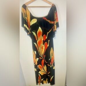 Off the shoulder Bold Colors Large Flowers Print Boho Maxi Dress Size Medium