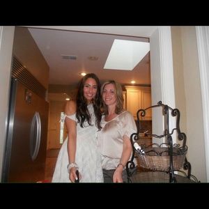 Classy crochet knit dress that fits very comfortably and is very flattering. It's a dark champaign color and blends off to an off white and is in great shape! I will probably regret selling this one! And.i am willing to negotiate with prices and can share more pics if needed!
