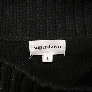 By Superdown, this long sleeve off the shoulder sweater is black with a rose gold sheen. Size Small.