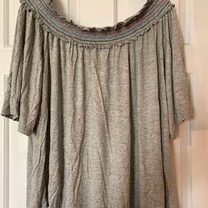 Off the shoulder grey shirt with thread detailed gathered neckline