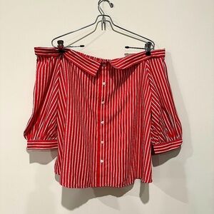 Off the shoulder red striped top